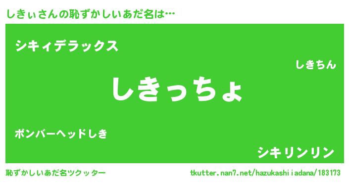 | ヒーロー風カッコイイあだ名 | 『ウルトラしきぃマン』『究極戦士シキィ』 |