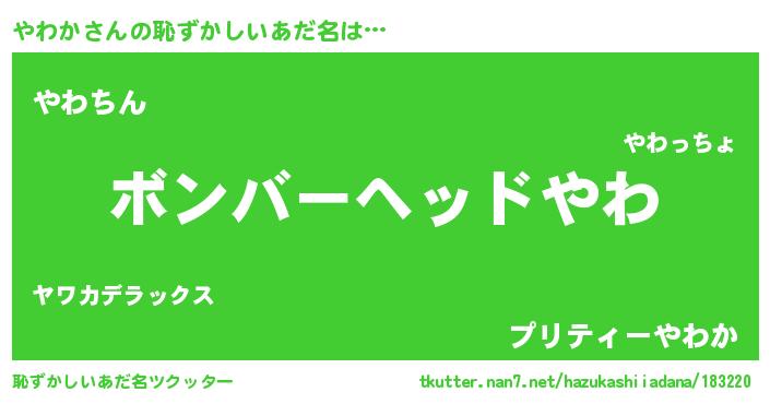 | ヘコむあだ名 | 『やわか(苦笑)』『やわにー』『牛乳』 |
