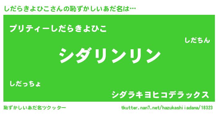 | 男性向けラノベタイトル風あだ名 | 『しだらきよひこの嫁は女の子じゃないと思った?』 |