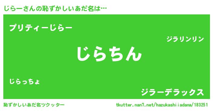 | 男性向けラノベタイトル風あだ名 | 『誰もが恐れるあのじらーが、ぼくの専属メイドになるようです。』 |