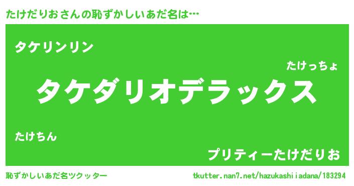 | 意味不明あだ名 | 『自称たけだりお』『ペロリンたけだりお』 |