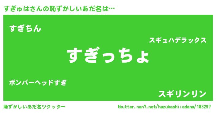 | 欧米人風あだ名 | 『すぎゅは・ステッグマイヤー』 |