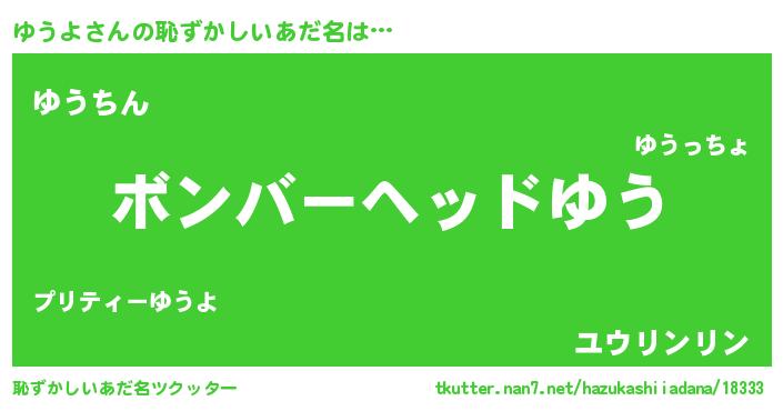 | ヒーロー風カッコイイあだ名 | 『慈愛の使者ゆうよ』『ネオユウヨ』 |