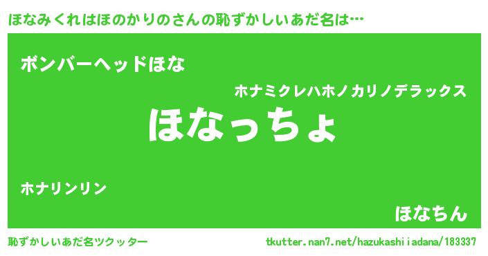 | 男性向けラノベタイトル風あだ名 | 『ホナミクレハホノカリノスレイヤー』 |