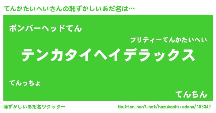 | 意味不明あだ名 | 『自称てんかたいへい』 |