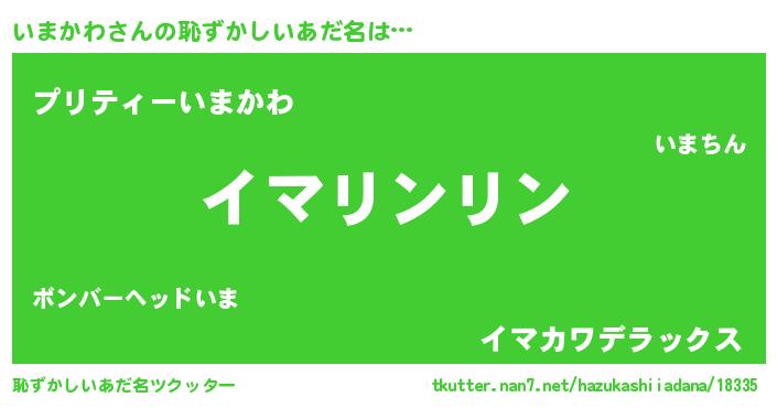 | 男性向けラノベタイトル風あだ名 | 『この素晴らしい世界にいまかわを!』 |