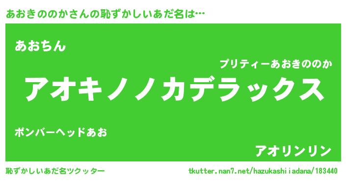 | 男性向けラノベタイトル風あだ名 | 『Re:あおきののかから始める異世界生活』 |