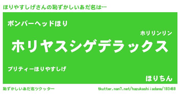 | 意味不明あだ名 | 『自称ほりやすしげ』 |