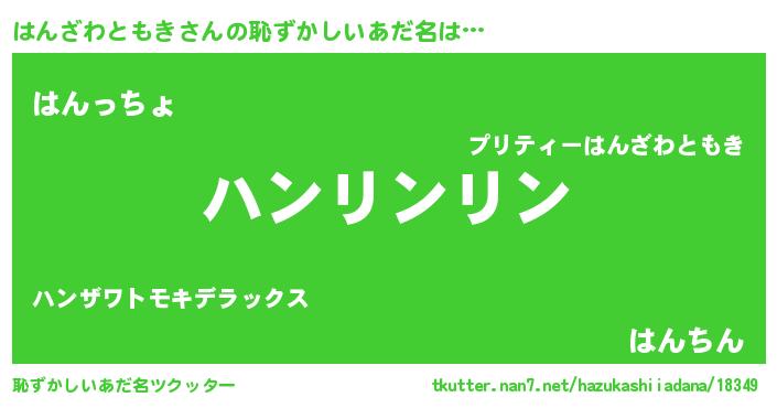 | 女子向けラノベタイトル風あだ名 | 『はんざわともきの卵を拾いまして』 |