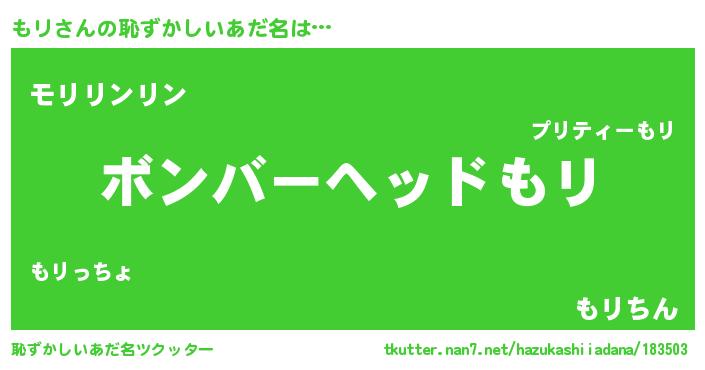 | ヘコむあだ名 | 『もリっぺ』『もリ(笑)』『もリもー』 |