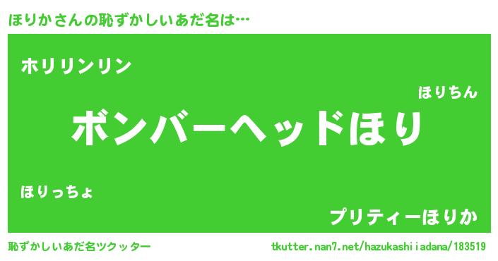 | 男性向けラノベタイトル風あだ名 | 『ほりか~年齢イコール彼女いない歴の魔法使い~』 |