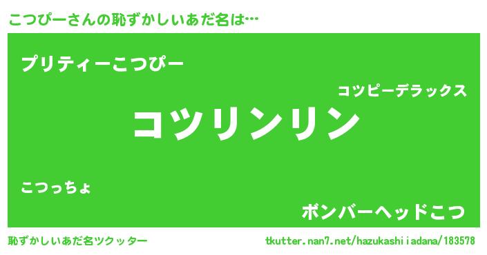 | 男性向けラノベタイトル風あだ名 | 『転生したらこつぴーだった件』 |