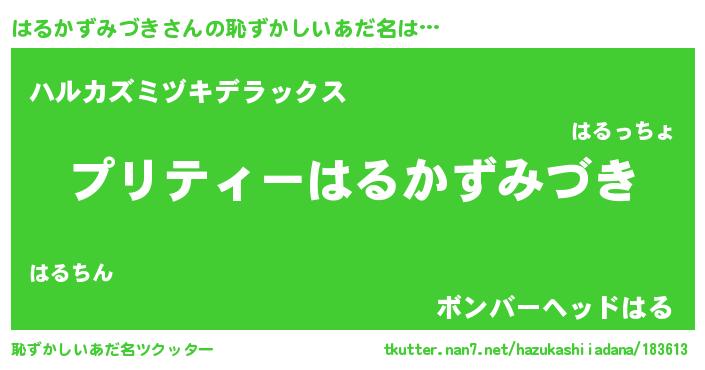 | ヒーロー風カッコイイあだ名 | 『スーパーハルカズミヅキ』 |