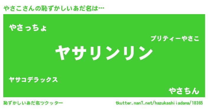 | 男性向けラノベタイトル風あだ名 | 『転生したらやさこだった件』 |