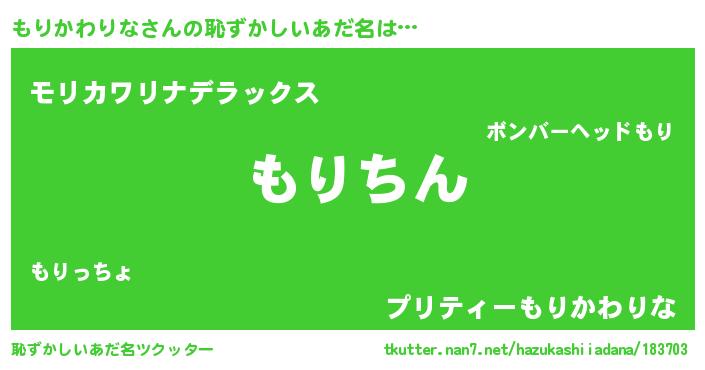 ヘコむあだ名 | 『もりかわりな(苦笑)』『もりにゅー』 |