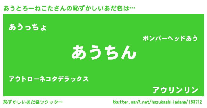 | 意味不明あだ名 | 『永久保存あうとろーねこた』 |