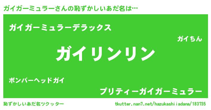 | 意味不明あだ名 | 『とにかく怪しいガイガーミュラー』 |