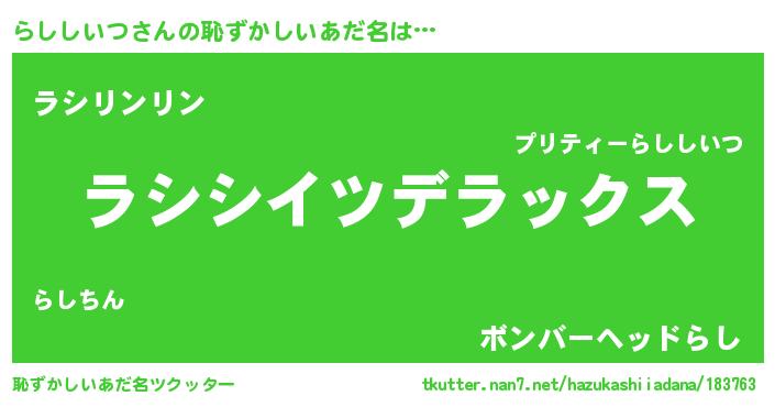 | 意味不明あだ名 | 『自称らししいつ』『ペロリンらししいつ』 |