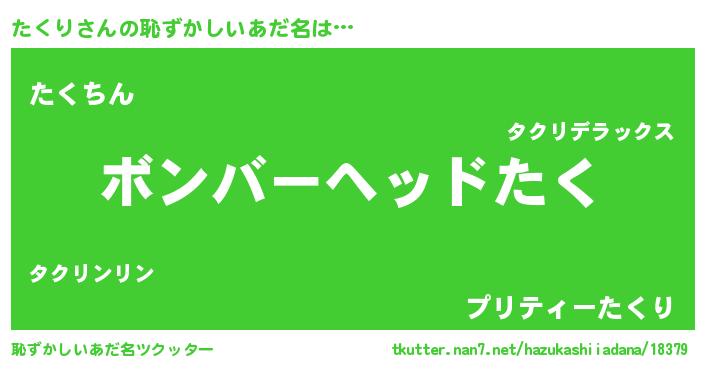| ヘコむあだ名 | 『たくり(遠い目)』『たくにー』 |
