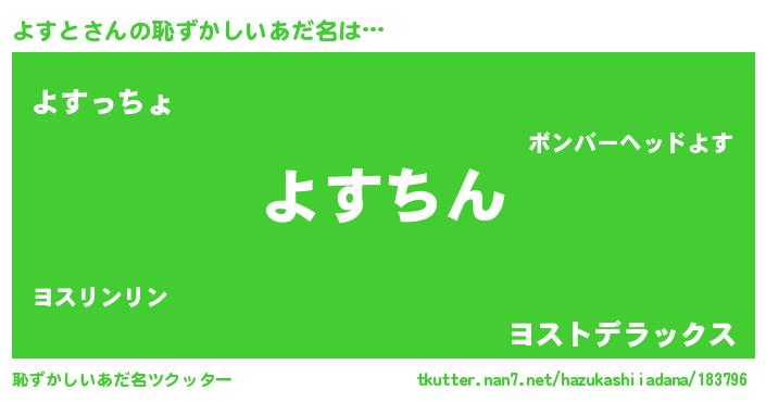 | 意味不明あだ名 | 『永久保存よすと』『よすとフォーエバー』 |