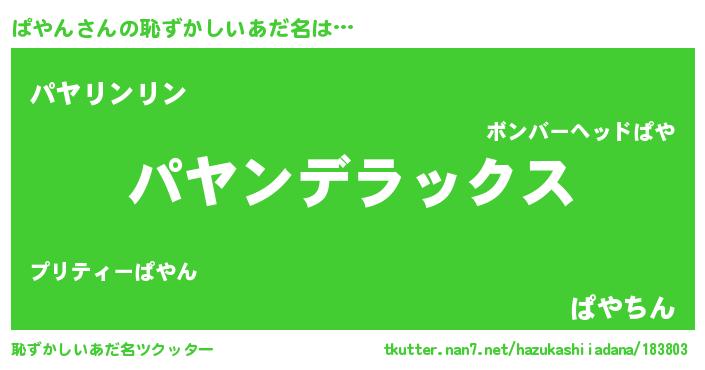 | 意味不明あだ名 | 『自称ぱやん』『とにかく怪しいぱやん』 |
