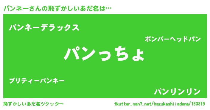 | 男性向けラノベタイトル風あだ名 | 『やはりパンネーの青春ラブコメはまちがっている 』 |