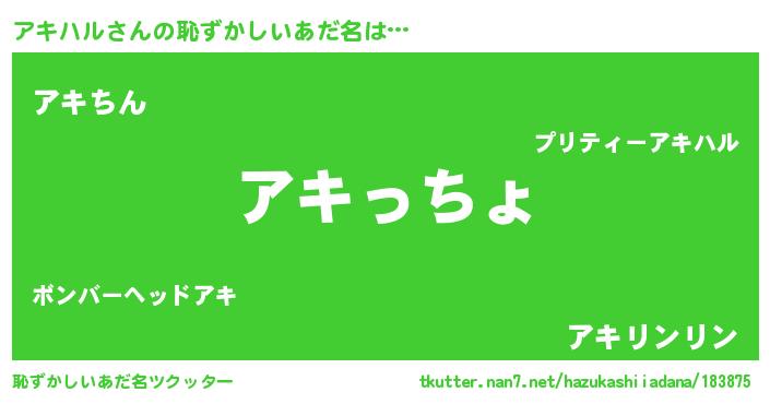 | ファンタジー風あだ名 | 『エターナルアキハルー』 |
