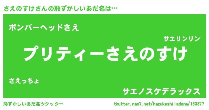 | 胡散臭い通販商品みたいなあだ名 | 『あなたにだけ特別に提供する100年もののヴィンテージワイン…その名も「さえのすけ」』 |