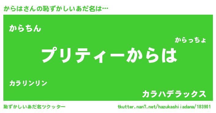 | ヘコむあだ名 | 『からにゅー』『からは(笑)』 |
