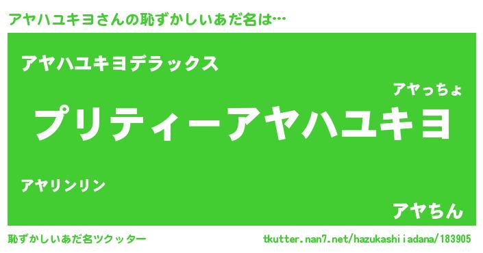 | ヘコむあだ名 | 『アヤもー』『アヤハユキヨ(小並感)』 |
