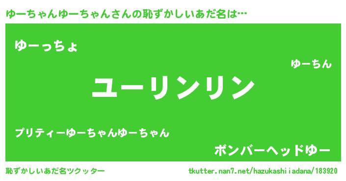 | 男性向けラノベタイトル風あだ名 | 『ダンジョンにゆーちゃんゆーちゃんを求めるのは間違っているだろうか』 |