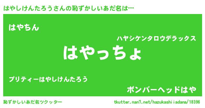 | 男性向けラノベタイトル風あだ名 | 『やはりはやしけんたろうの青春ラブコメはまちがっている 』 |