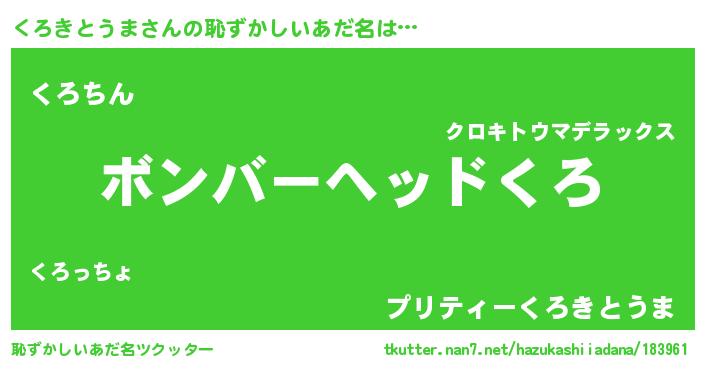 | ヘコむあだ名 | 『くろきとうま(震え声)』『くろっふぃ~』 |