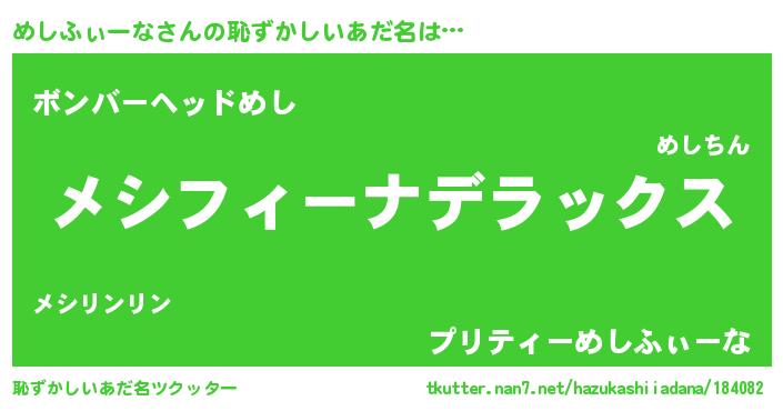 | ヒーロー風カッコイイあだ名 | 『最強戦士メシフィーナ』『仮面メシダー』 |