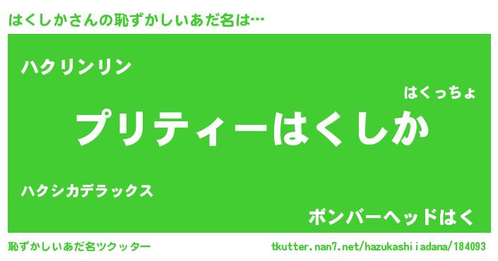| 男性向けラノベタイトル風あだ名 | 『はくしかの憂鬱』『ハクシカスレイヤー』 |
