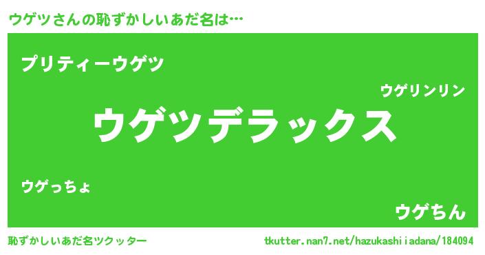 | ヒーロー風カッコイイあだ名 | 『超時空戦士ウゲツ』『仮面ウゲダー』 |