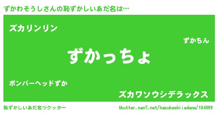 | 意味不明あだ名 | 『ずかわそうしフォーエバー』 |