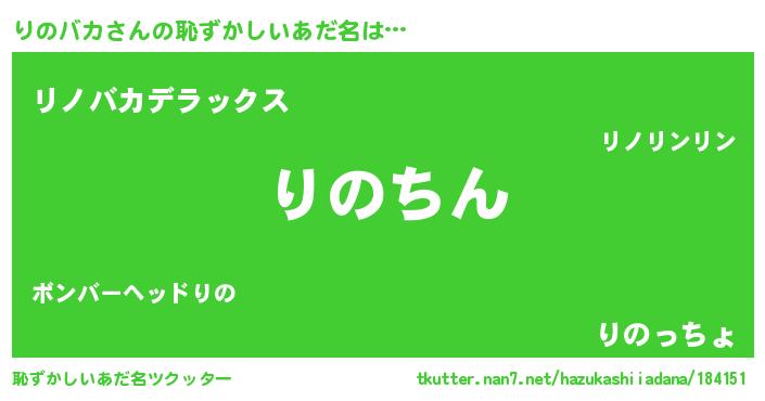 | 男性向けラノベタイトル風あだ名 | 『りのバカという概念が存在しない退屈な世界 』 |