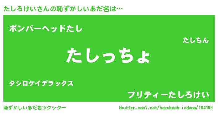 | 意味不明あだ名 | 『たしろけいフォーエバー』 |