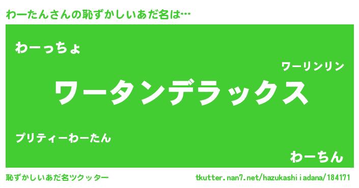 | 男性向けラノベタイトル風あだ名 | 『Re:わーたんから始める異世界生活』 |