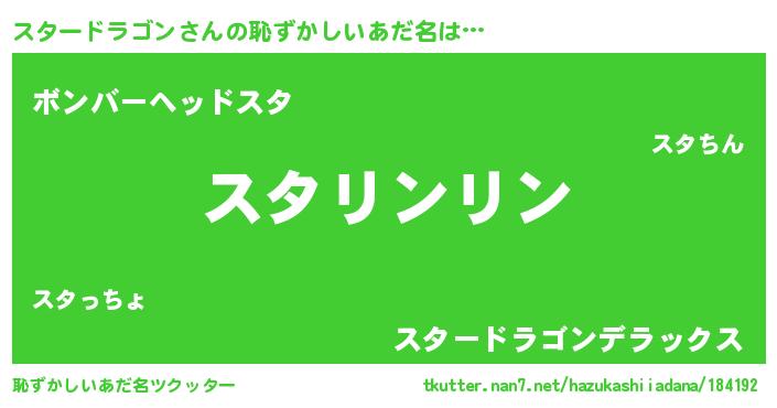 | ヘコむあだ名 | 『スタを』『スタードラゴン(苦笑)』 |