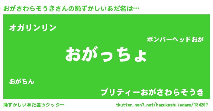 | 男性向けラノベタイトル風あだ名 | 『転生したらおがさわらそうきだった件』 |