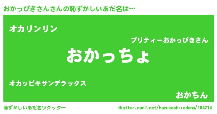 | 意味不明あだ名 | 『住所不定無職おかっぴきさん(13歳)』 |