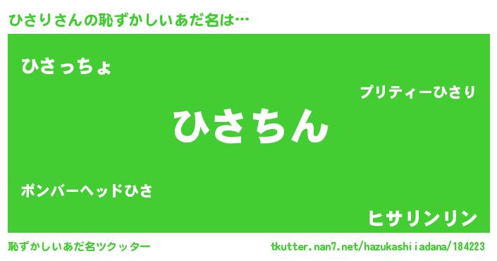 | ヘコむあだ名 | 『ひさり(小並感)』『レバニラ』 |