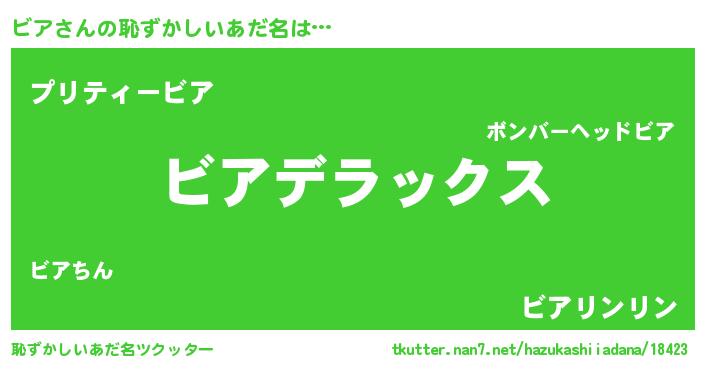 | 女子向けラノベタイトル風あだ名 | 『ビアストレイドッグス』『ビア恋絵巻』 |