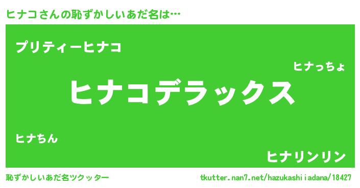 | ヒーロー風カッコイイあだ名 | 『仮面ヒナダー』『超時空戦士ヒナコ』 |