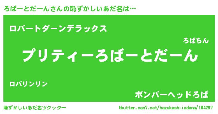 | ヒーロー風カッコイイあだ名 | 『仮面ロバダー』『ネオロバートダーン』 |