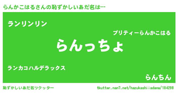 | 意味不明あだ名 | 『らんかこはるフォーエバー』 |