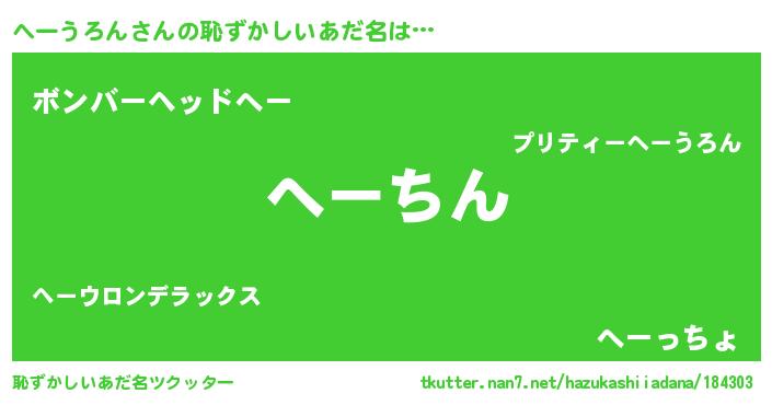 | 意味不明あだ名 | 『永久保存へーうろん』 |