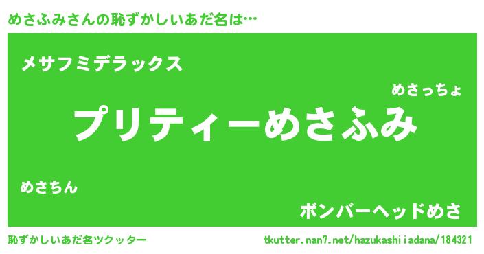 | 意味不明あだ名 | 『ペロリンめさふみ』『自称めさふみ』 |